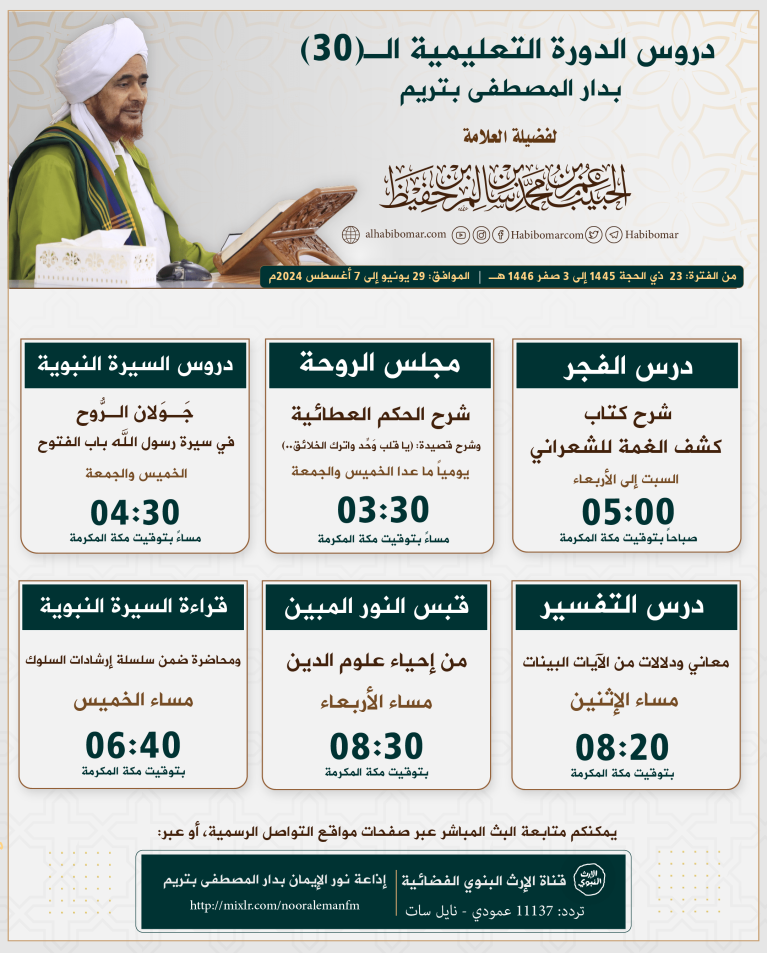 (تبث على قناة الإرث النبوي الفضائية،وإذاعة نور الإيمان من دار المصطفى)