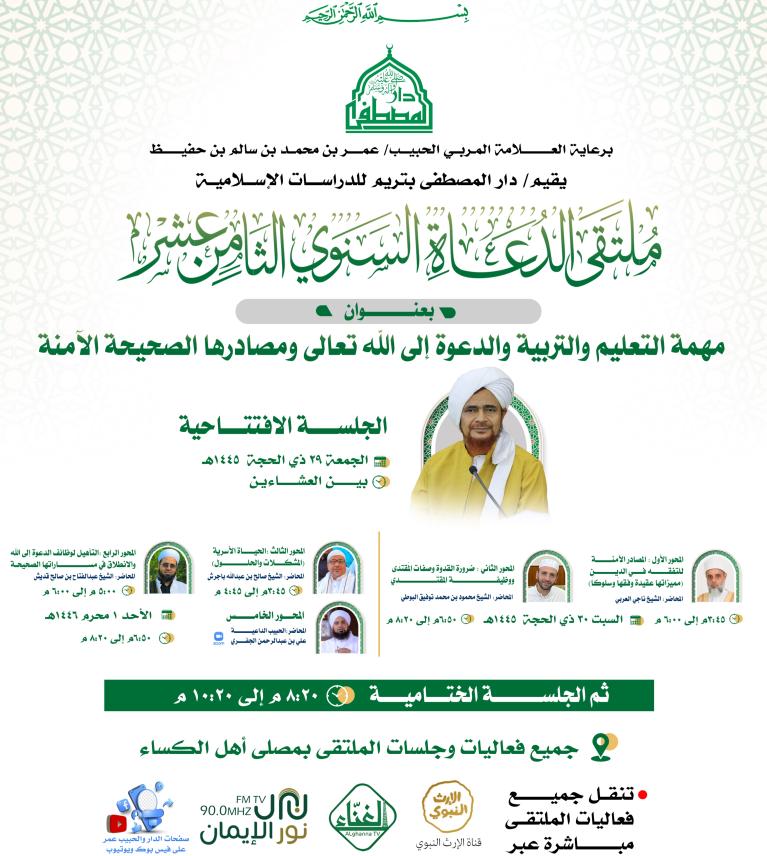 ينظم دار المصطفى بتريم للدراسات الإسلامية (ملتقى الدعاة السنوي الثامن عشر)
