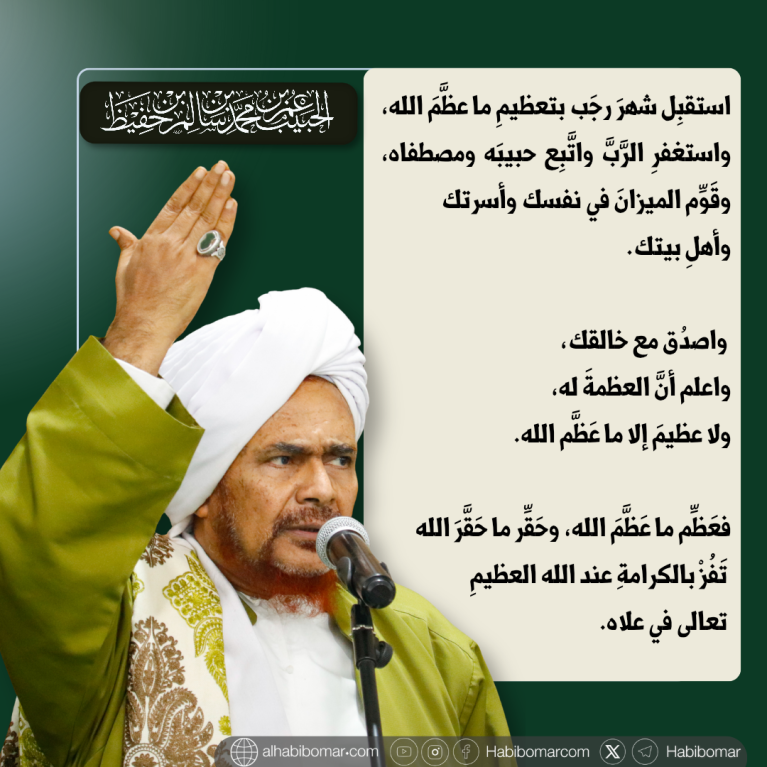 Sambutlah bulan Rajab dengan mengagungkan hal-hal yang Allah agungkan. Perbanyaklah memohon ampun kepada-Nya, ikutilah kekasih dan pilihan-Nya (Nabi Muhammad ﷺ), serta luruskan kembali timbangan dalam dirimu, keluargamu, dan seluruh anggota rumahmu.