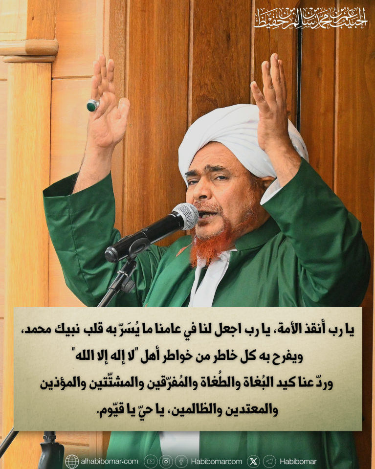 Ya Allah, selamatkanlah umat ini. Ya Allah, wujudkanlah di tahun kami ini semua yang membuat hati Nabi-Mu Muhammad ﷺ bahagia, dan membahagiakan setiap hati dari orang-orang yang mengucapkan ‘Lā ilāha illallāh’.