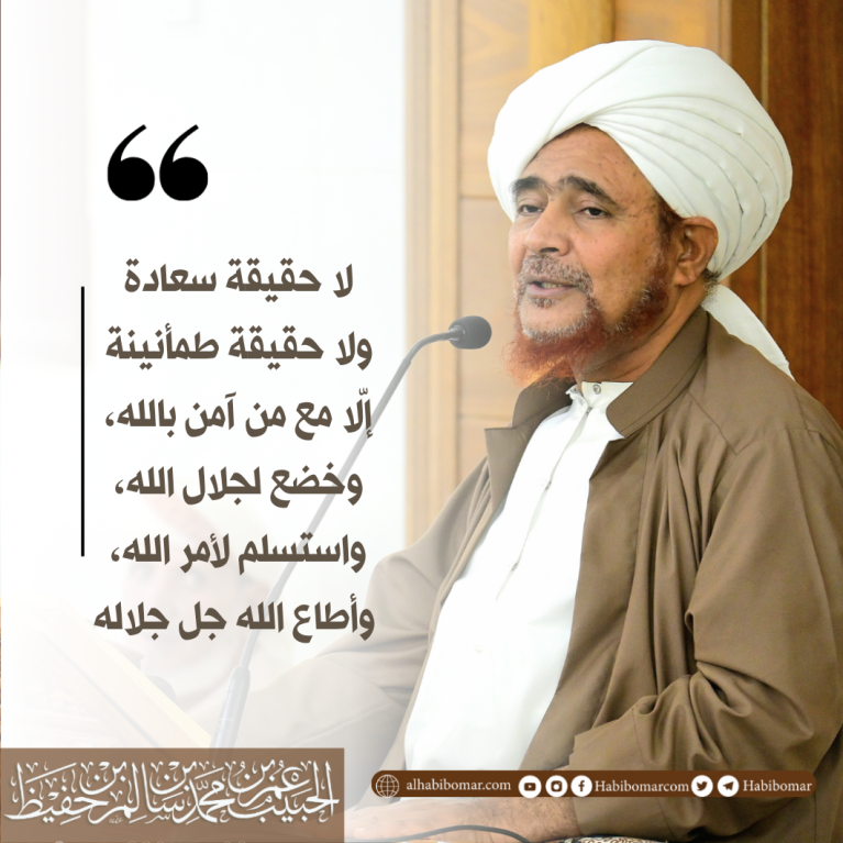 لا حقيقة سعادة ولا حقيقة طمأنينة إلّا مع من آمن بالله، وخضع لجلال الله، واستسلم لأمر الله، وأطاع الله جل جلاله.
