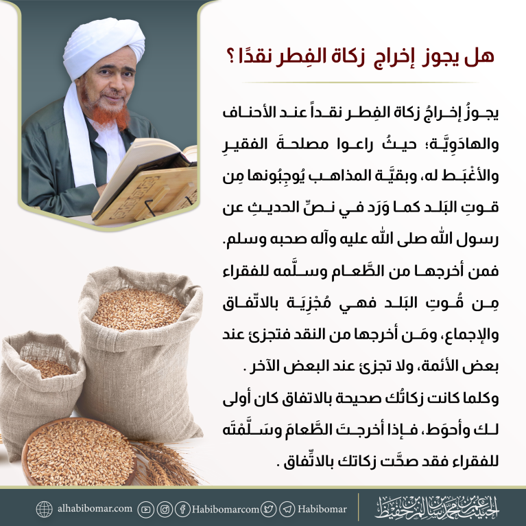 حُكم إخراج زكاة الفطر نقداً (English & Indonesian translation)