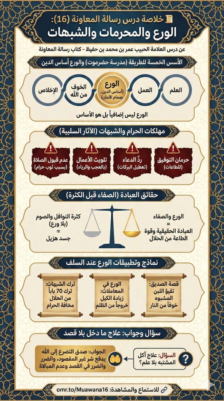 خلاصة درس رسالة المعاونة (16) الورع والمحرمات والشبهات
