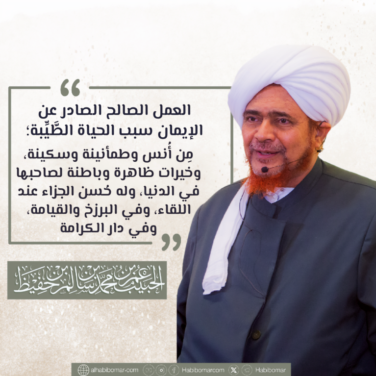 العمل الصالح الصادر عن الإيمان سبب الحياة الطَّيِّبة؛ مِن أُنس وطمأنينة وسكينة، وخيرات ظاهرة وباطنة لصاحبها في الدنيا، وله حُسن الجزاء عند اللقاء، وفي البرزخ والقيامة، وفي دار الكرامة.