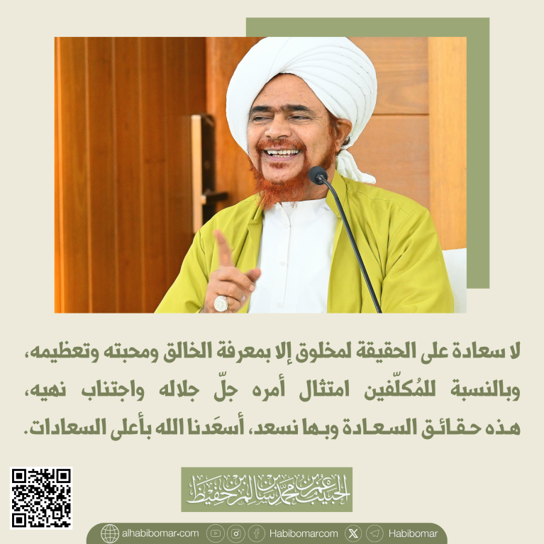 * لا سعادة على الحقيقة لمخلوق إلا بمعرفة الخالق ومحبته وتعظيمه، وبالنسبة للمكلّفين امتثال أمره جلّ جلاله واجتناب نهيه، هذه حقائق السعادة وبها نسعد، أسعَدنا الله بأعلى السعادات.