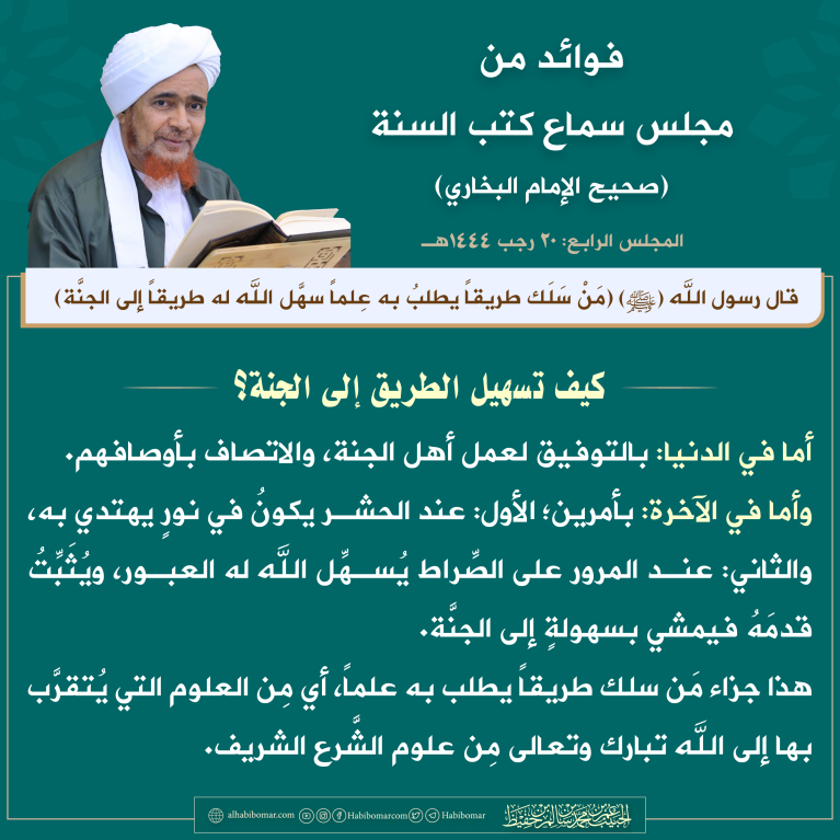 قال رسول الله ﷺ: (من سلك طريقاً يطلب به علما سهل الله له طريقاً إلى الجنة)