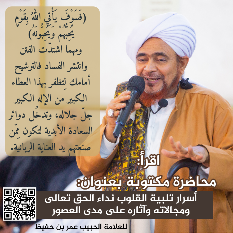 محاضرة مكتوبة بعنوان: أسرار تلبية القلوب نداء الحق تعالى ومجالاته وآثاره على مدى العصور.