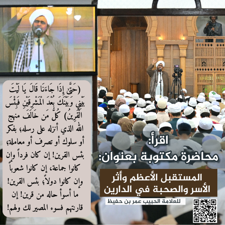 محاضرة مكتوبة للعلامة الحبيب عمر بن حفيظ بعنوان: المستقبل الأعظم وأثر الأسر والصحبة في الدارين.