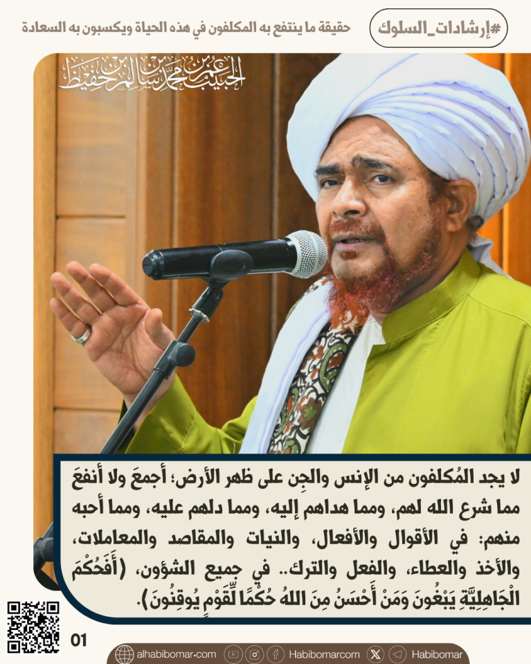 لا يجد المُكلفون من الإنس والجِن على ظهر الأرض؛ أجمعَ ولا أنفعَ مما شرع لهم، ومما هداهم إليه، ومما دلهم عليه، ومما أحبه منهم: في الأقوال والأفعال، والنيات والمقاصد والمعاملات، والأخذ والعطاء، والفعل والترك.. في جميع الشؤون، (أَفَحُكْمَ الْجَاهِلِيَّةِ يَبْغُونَ وَمَنْ أَحْسَنُ مِنَ اللهُ حُكْمًا لِّقَوْمٍ يُوقِنُونَ).