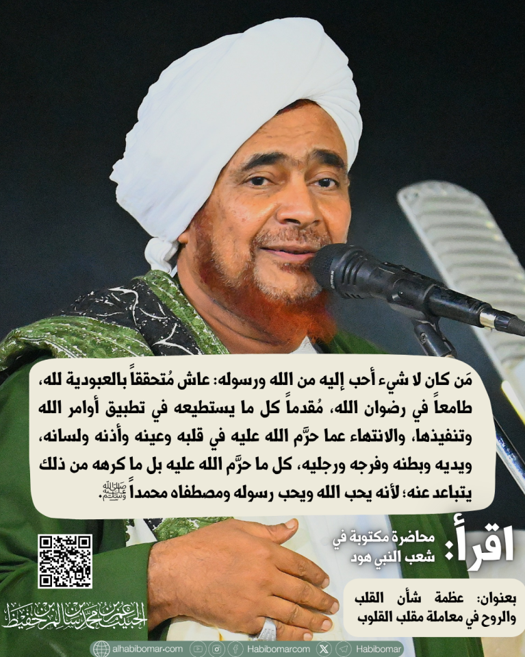 للعلامة الحبيب عمر بن محمد بن حفيظ، في المولد السنوي في زيارة آل الشيخ أبي بكر للنبي هود عليه السلام، ليلة الإثنين 11 شعبان 1446هـ