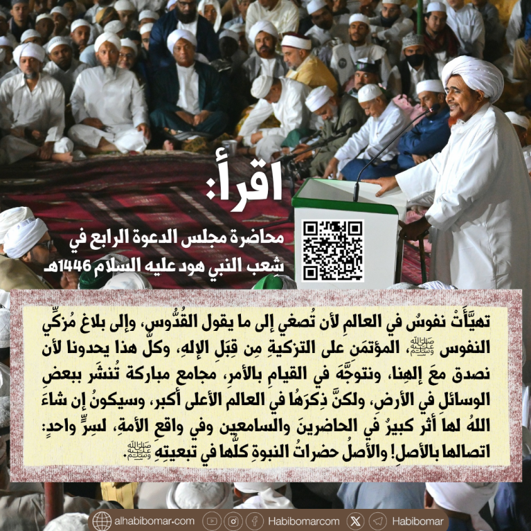 للعلامة الحبيب عمر بن محمد بن حفيظ، في المجلس الرابع من مجالس الدعوة إلى الله في شعب النبي هود عليه السلام، ليلة السبت 9 شعبان 1446هـ