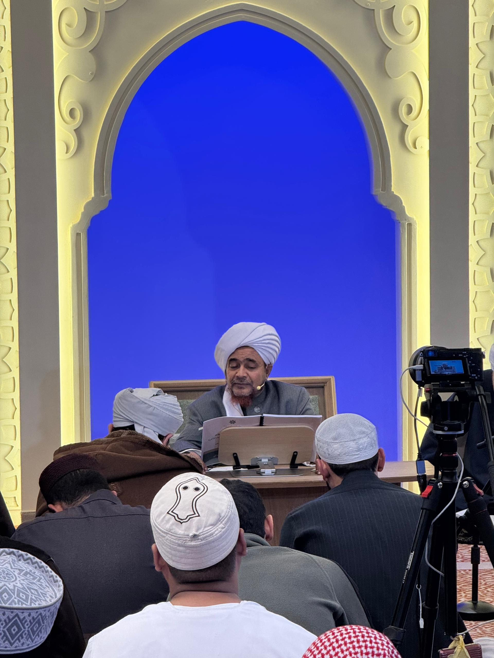 وإذا جاء السائل يسأله، إن كان في شيء من مسائل الفقه أو اللغة العربية وغيرها يجيبه، وإن قال له في الحديث، يقول له: انتظر، فيغتسل، ويتوضأ ويلبس أحسن الثياب ويتطيب ويقول: سَل؛ تعظيماً لرسول الله ﷺ. كان له منصة في الحرم لا يجلس عليها إلا للحديث عن رسول الله، إذا جلس يسرد سنده حتى يصل إلى الصحابي ثم يقول: عن صاحب هذا الضريح ﷺ أنه قال: كذا وكذا، وأنه فعل كذا وكذا ﷺ. وهكذا كان العلماء ورضي الله عن الإمام مالك.
