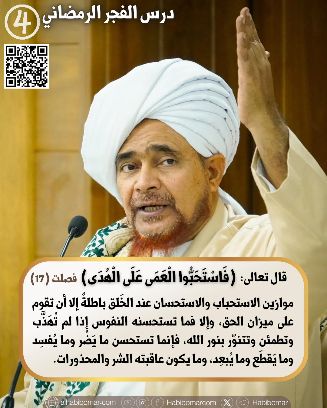 الدرس الرابع من تفسير العلامة عمر بن محمد بن حفيظ للآيات الكريمة من سورة فصلت، ضمن الدروس الصباحية لشهر رمضان المبارك من عام 1447هـ ، تفسير قوله تعالى: