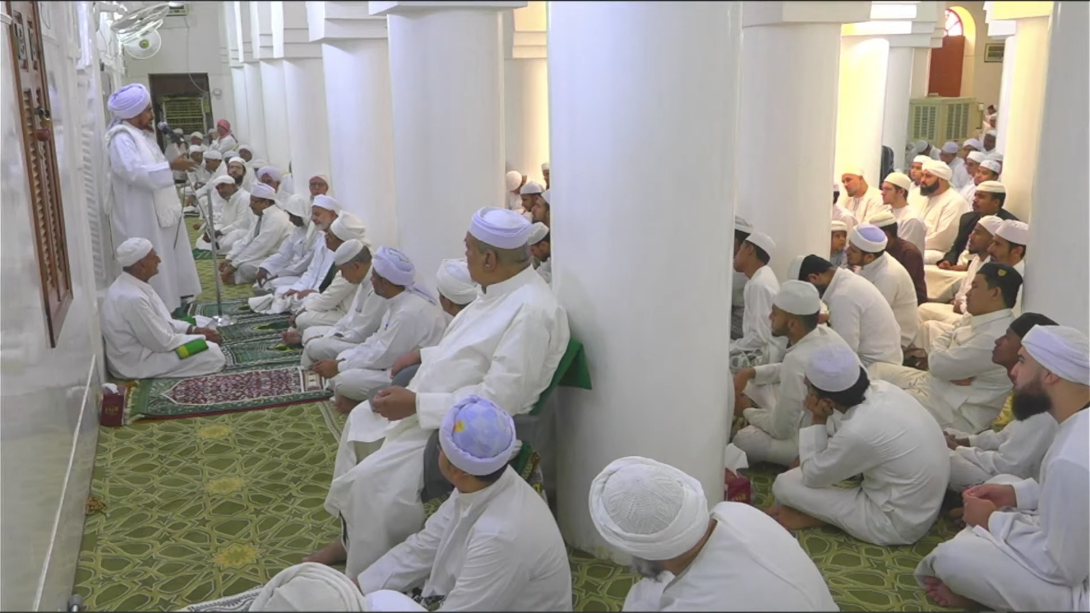 مذاكرة العلامة الحبيب عمر بن محمد بن حفيظ في مسجد الشيخ أبي بكر بن سالم في منطقة عينات، وادي حضرموت، ظهر الجمعة 24 رمضان 1447هـ بعنوان: