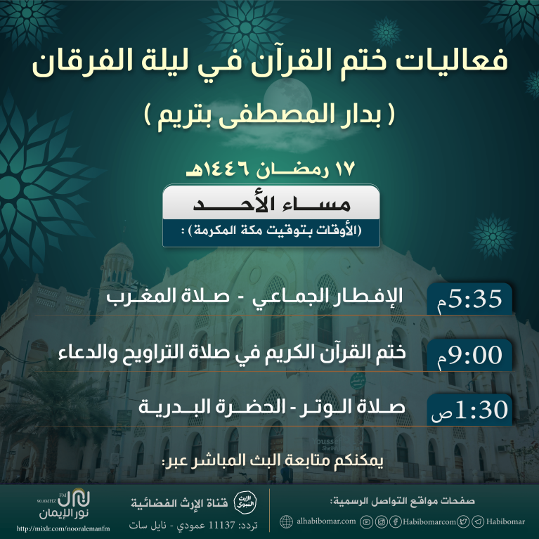 - - وإذاعة نور الإيمان من دار المصطفى.