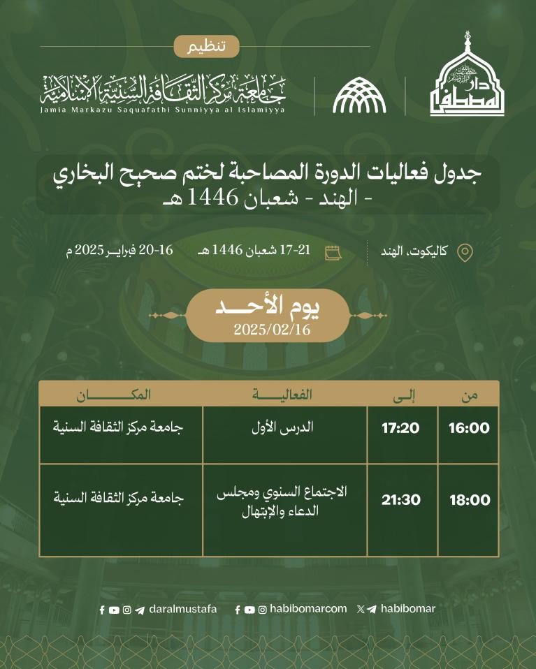 جدول فعاليات الدورة المصاحبة لختم صحيح البخاري - الهند - شعبان 1446هـ