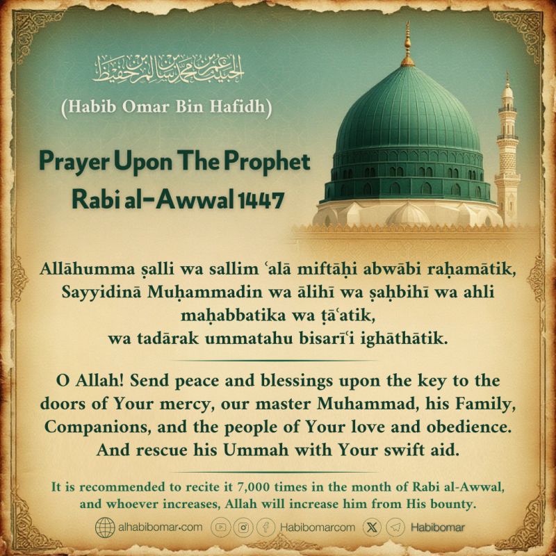 Habib Umar bin Hafidh recommends reciting this blessing upon the Prophet ﷺ abundantly in the month of Rabi al-Awwal 1447H: