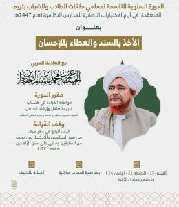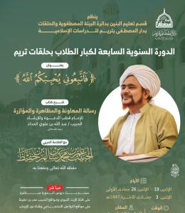إعلان.. الدورة السنوية التاسعة لمعلمي حلقات الطلاب والشباب بتريم بعنوان: "الأخذ بالسند والعطاء...
