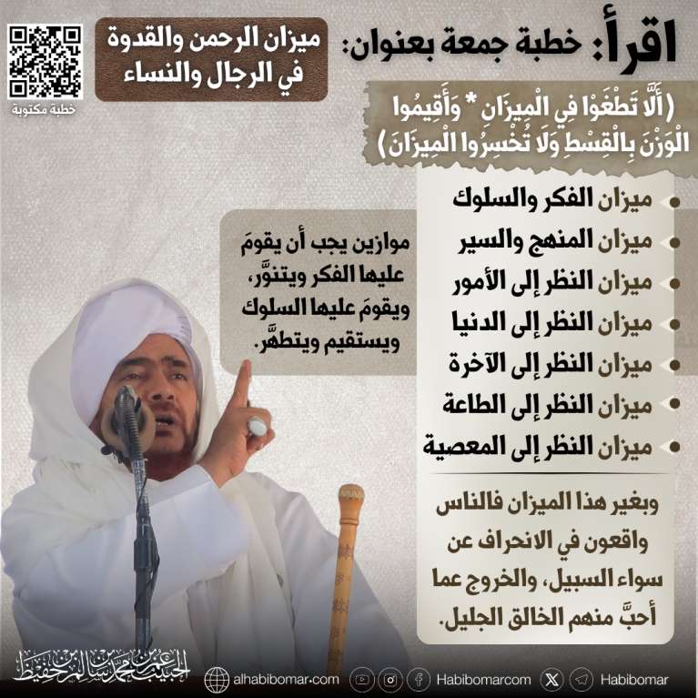 موازين يجب أن يقومَ عليها الفكر ويتنوَّر، ويقومَ عليها السلوك ويستقيم ويتطهَّر.