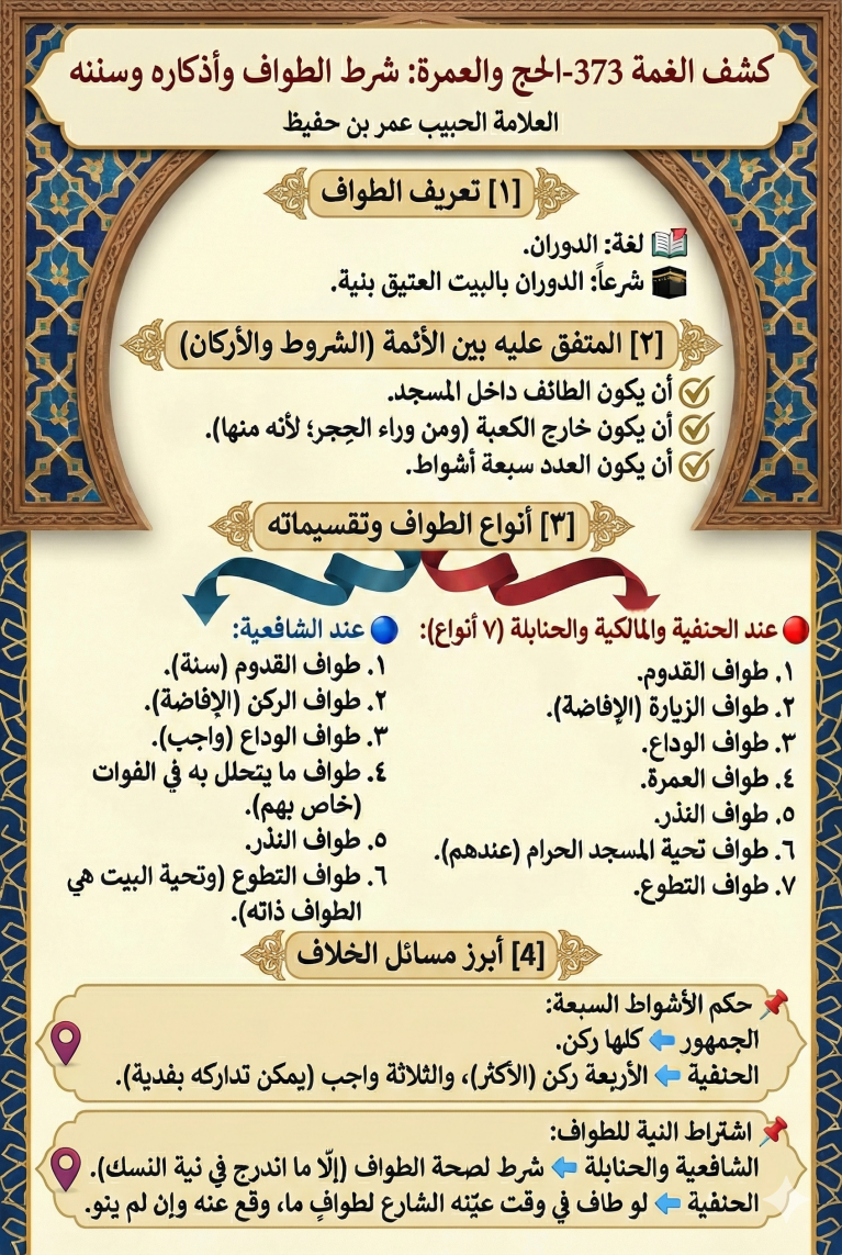 فوائد من "كشف الغمة 373- الحج والعمرة: شرط الطواف وأذكاره وسننه"