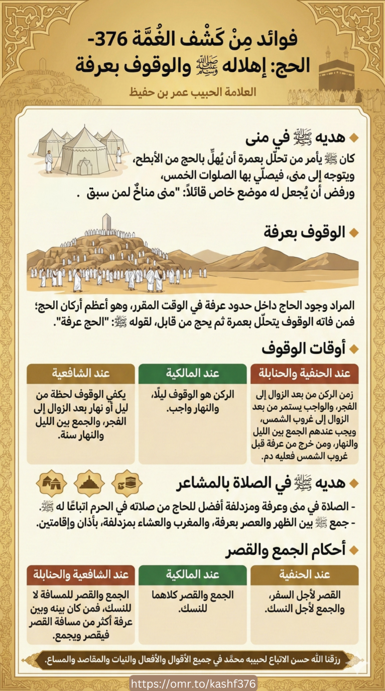 فوائد من كشف الغمة 376- الحج: إهلاله ﷺ والوقوف بعرفة