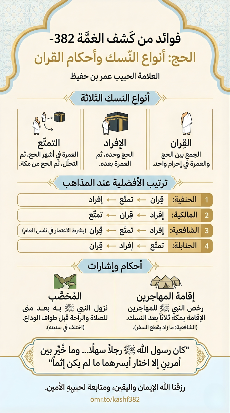 فوائد من كشف الغمة 382- الحج: أنواع النُّسُك وأحكام القِران
