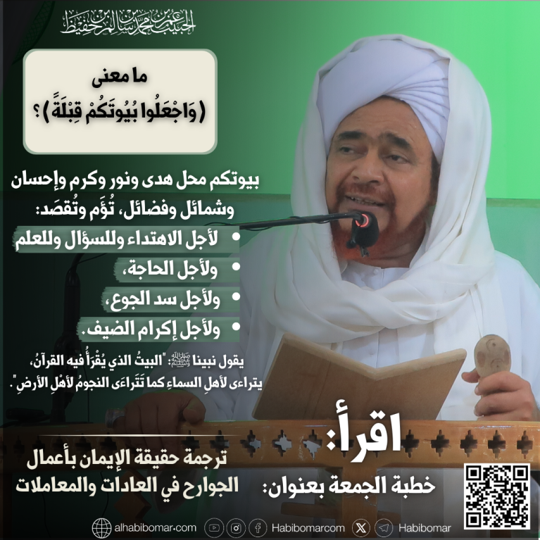 بيوتكم محل هدى ونور وكرم وإحسان وشمائل وفضائل، تُؤَم وتُقصَد: