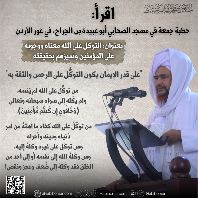 خطبة الجمعة للعلامة الحبيب عمر بن محمد بن حفيظ، في مسجد الصحابي أبو عبيدة بن الجراح، في منطقة الغور الشمالي، الأردن، 28 صفر الخير 1447هـ بعنوان:
