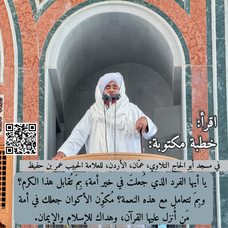 خطبة الجمعة للعلامة الحبيب عمر بن حفيظ، في مسجد أبو الحاج التلاوي، في عمّان، الأردن، 3 ربيع الأول 1446هـ