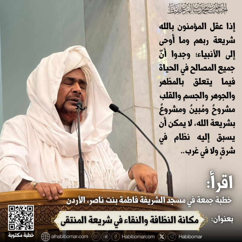 خطبة الجمعة للعلامة الحبيب عمر بن محمد بن حفيظ في مسجد الشريفة فاطمة بنت ناصر، في العاصمة الأردنية عمّان، 6 رجب الأصب 1447هـ بعنوان: