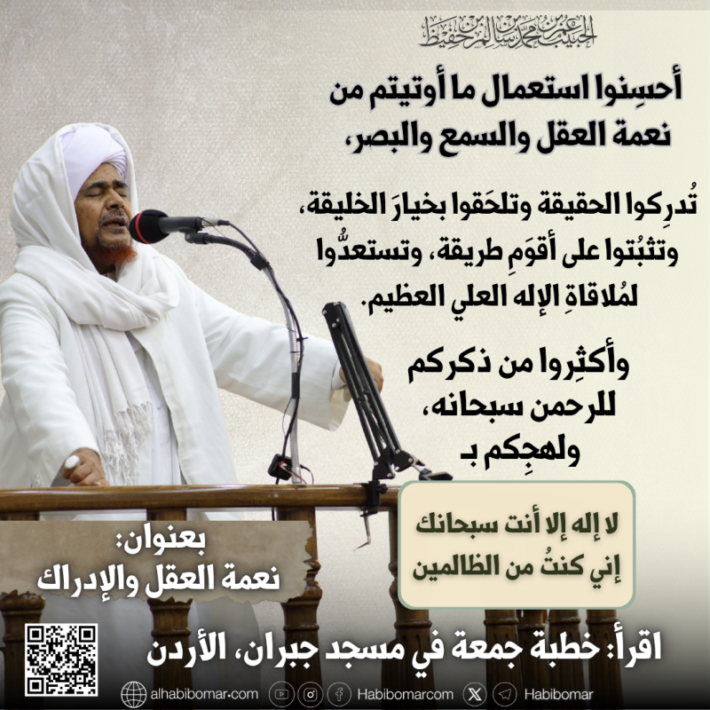 خطبة الجمعة للعلامة الحبيب عمر بن محمد بن حفيظ في مسجد جبران، في مدينة عمّان، الأردن، 13 رجب الأصب 1447هـ بعنوان: