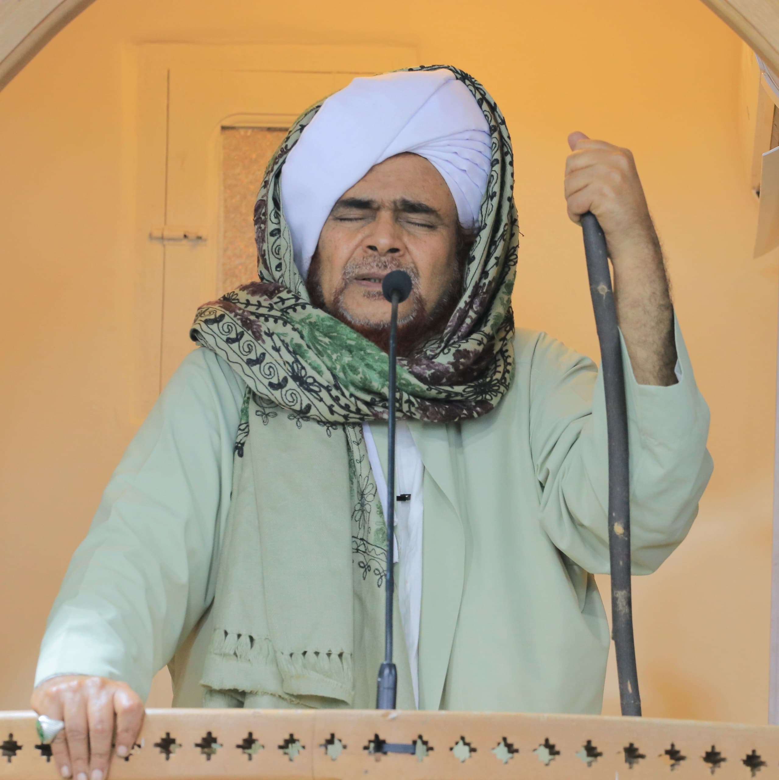 وأشهد أن سيدنا ونبينا وقُرّة أعيننا ونور قلوبنا محمداً عبده ورسوله، ظهرت عليه علامات الإنابة والخشية والفزع والخوف من الله، كلّما انكسف شمسٌ أو انخسف قمر، بل كلّما ثار سحابٌ لم يقرّ له قرار حتى تنزل المطر أو ينكشف، ولا أخوف لله منه، ولا أعرف بالله منه، ولا أعبد لله منه. صلّى الله وسلّم وبارك عليه وعلى آله، ووفّر حظّنا من إرثه الكريم.