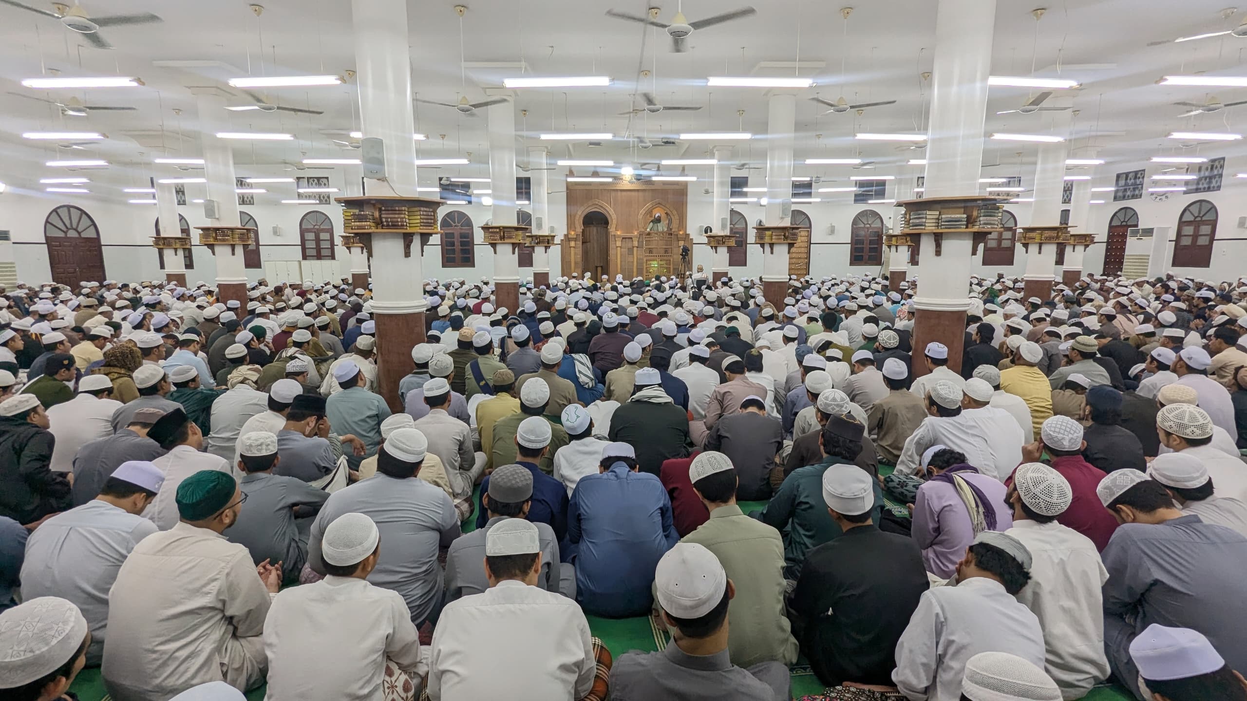 ساعة استشعارٍ لعظمة الإله مُسيِّر الأقمار والشموس والكواكب والأراضي والبرار والبحار، الله! أنتم بين يديه، لبّيتم نداء رسوله بالفزع إلى الصلاة، يا ربّ اقبل منّا صلاتنا، واجعلها صلةً بيننا وبينك، يقوى بها إيماننا ويزداد إلى أن نلقاك، ولا يلقاك أحدٌ منّا إلا على كمال الإيمان واليقين والمحبة منك ولك، يُحِبّ لقاءك وأنت تُحِبّ لقاءه، يا أرحم الراحمين.