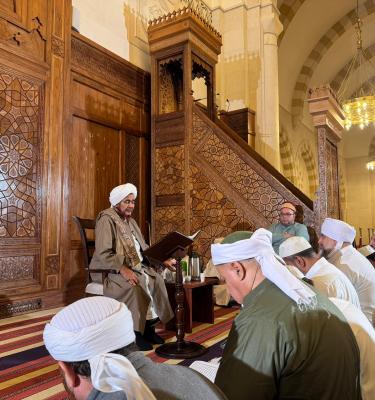أدمنا في الشهود الكامل، وتولنا بما توليت به الكامل من هذه الأمة، واكشف عنا وعن الأمة كل غمة. وأعلِ درجات من ألف الكتاب سيدنا محمد بن محمد بن محمد بن أحمد الغزالي وشيوخه وتلامذته ومن انتفع بهذا الكتاب ومشايخنا في الدين وذوي الحقوق علينا وأمواتنا وأموات المسلمين أجمعين، بسر الفاتحة إلى أرواحهم، وإلى أرواح من تقدم في هذا المسجد ومؤسسه وجميع القائمين بالخير فيه وذوي الحقوق علينا خاصة وأموات المسلمين وأحياءهم إلى يوم الدين عامةً.