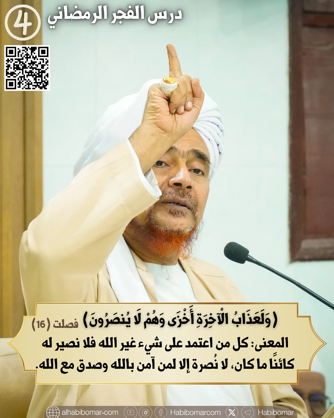 الدرس الرابع من تفسير العلامة عمر بن محمد بن حفيظ للآيات الكريمة من سورة فصلت، ضمن الدروس الصباحية لشهر رمضان المبارك من عام 1447هـ ، تفسير قوله تعالى: