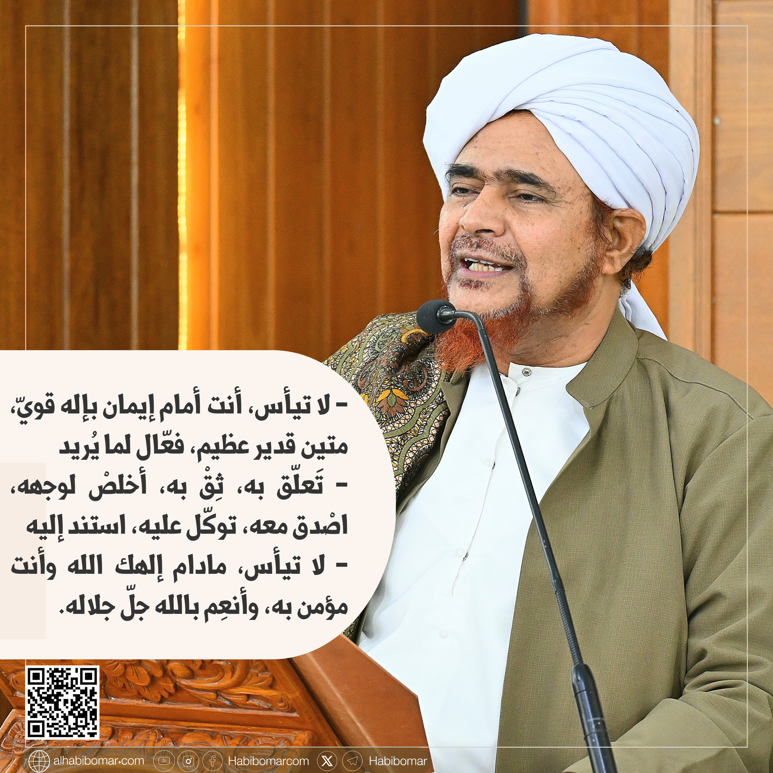 لا تيأس، مادام إلهك الله، وأنت مؤمن به، وأَنْعِمْ بالله، جلّ جلاله.