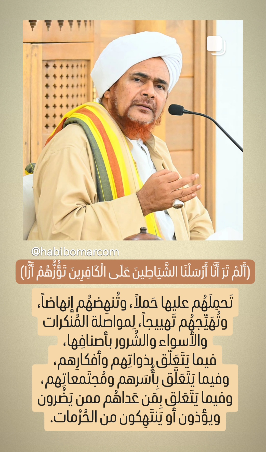 (أَلَمْ تَرَ أَنَّا أَرْسَلْنَا الشَّيَاطِينَ عَلَى الْكَافِرِينَ تَؤُزُّهُمْ أَزًّا) وَسُلْطَتُهُمْ عَلَى الْكَافِرِ أَكْبَر، وَتَسْرِي السِّرَايةُ لِكُلِّ مَنْ غَفَلَ عَنِ اللَّهِ الْعَلِيِّ الْأَكْبَر: (وَمَن يَعْشُ عَن ذِكْرِ الرَّحْمَٰنِ نُقَيِّضْ لَهُ شَيْطَانًا فَهُوَ لَهُ قَرِينٌ ) [الزخرف:36].