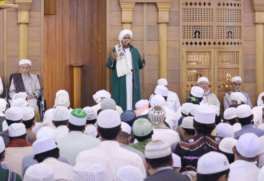 وجاءتكُم الخَيرات وجاءتكُم المَبَرَّات، هذا الذي قَدِم معَ والِدِهِ سَبقت له الدِّراسة في الشّام المُباركة وما فيها مِن بَرَكَة، ولما اتَّصل بِالسَّنَد والرجال الصالحين سمِعتم الكلمات بِما فيها مَن نورانِيَّة بِما فيها من خَير، بِما فيها من نَفخة الرَّبط وسرِّ الاتِّصال، وهكذا الباقي في الأمّة من سِرايات الاتِّصال بِالجنابِ الأشرف يجمعهُم على مسلك واحد، مَوروث عن حبيب الواحد صلى الله وسلم وبارك عليه وعلى آلهِ، جامعِ المحامِد عليه الصلاة والسلام، والله يُقَوِّي هذهِ الرَّوابِط في الأخيار في الأمّة، فإنَّ عليهِمُ المُعَوَّل فيما يُريد الله من إعزازِ هذا الدِّين وإظهارهِ في الدُّنيا، وفيما يُريدُ الله من الكرامة في البَرزخ وفي القِيامة وفي الجنة كلُّهُ مَنُوط بأهلِ هذه الوِجهات، مربُوط بأهلِ هذه الاتِّصالات وحدهم الذين أرادهُم.