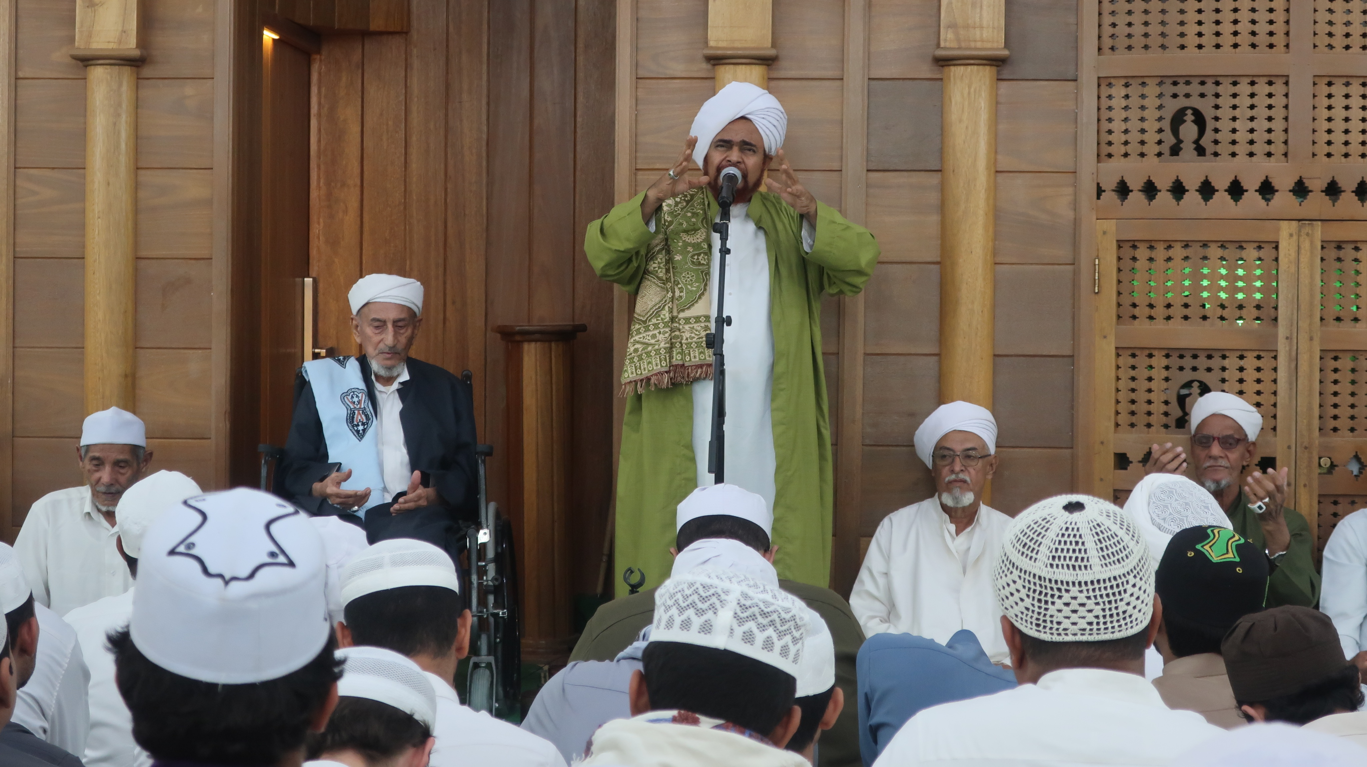 نصرك هذا يا الله، نصرك لهذا الحبيب يا الله، أبرِزه فينا، أبرِزه في المسلمين في غزة، أبرزه وأظهره في المسلمين في الضفة الغربية، وفي أكناف بيت المقدس، وفي شرق الأرض وغربها، يا خير النَّاصرين، فإنا نستغيثك فأغِثنا، وأنت القائل لأوائلنا: {إِذْ تَسْتَغِيثُونَ رَبَّكُمْ فَاسْتَجَابَ لَكُمْ} وها نحن من بعدهم نستغيثك فاستجِب لنا، نستغيثك فاستجِب لنا، نستغيثك فاستجِب لنا، أدِم الحفظ لحضرموت من سلطة الكفار والفجار والأشرار، ورُدَّ كيدهم عنها وعن أهلها في السرِّ والإجهار، يا قوي يا عزيز يا غفار، ويمننا وشامنا، وشرقنا وغربنا، يا قهَّار.. يا قهَّار، يا شديد البطش ابطش بأعدائك وأعدائنا، يا الله اجعل أعداءنا أعداء الدين كعصفٍ مأكول، اجعل أعداءنا أعداء الدين كعصفٍ مأكول، اجعل أعداءنا أعداء الدين كعصفٍ مأكول، يا حيُّ يا قيُّوم، يا بَرُّ يا وصول، بوجاهة سيدنا الرسول يا الله.