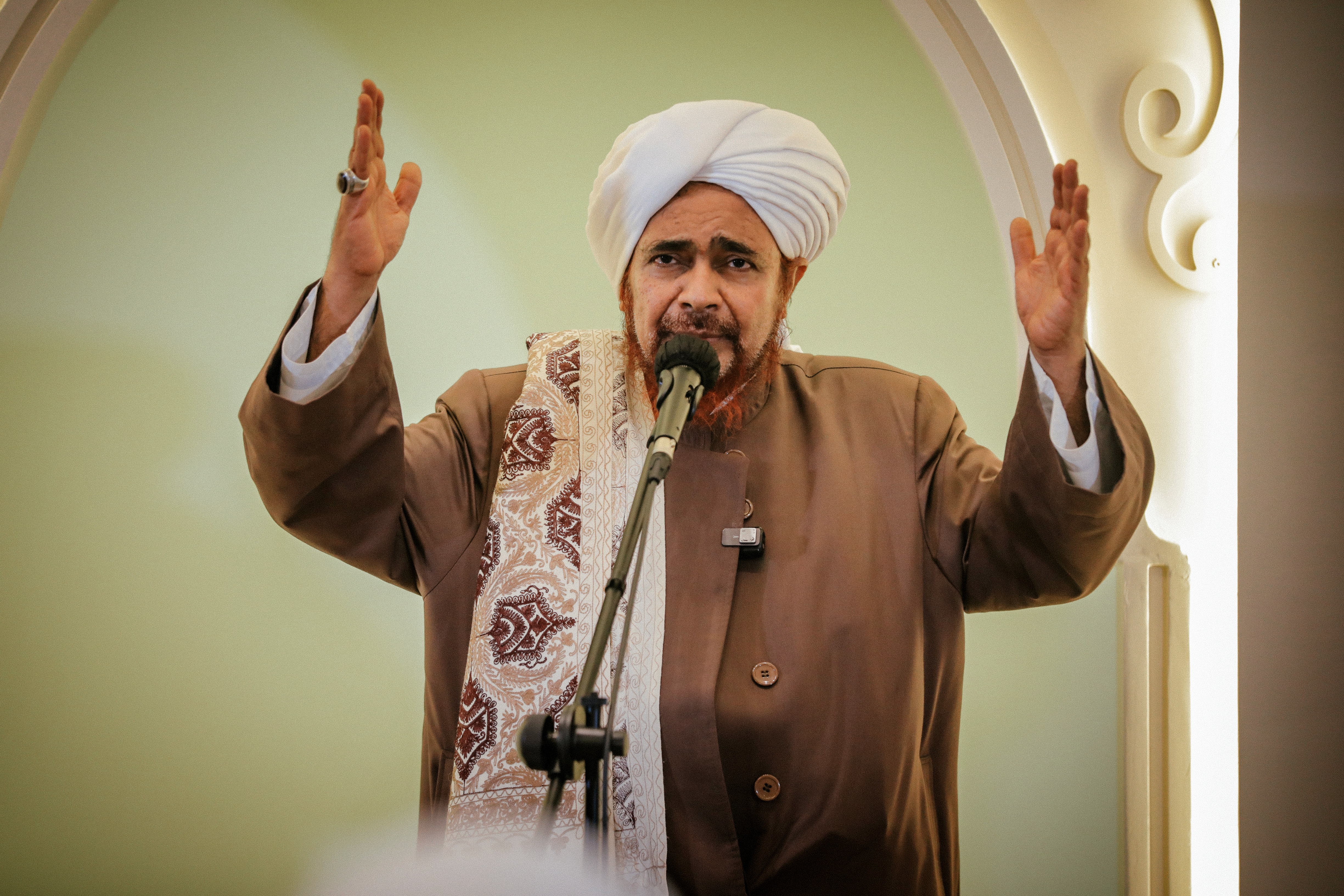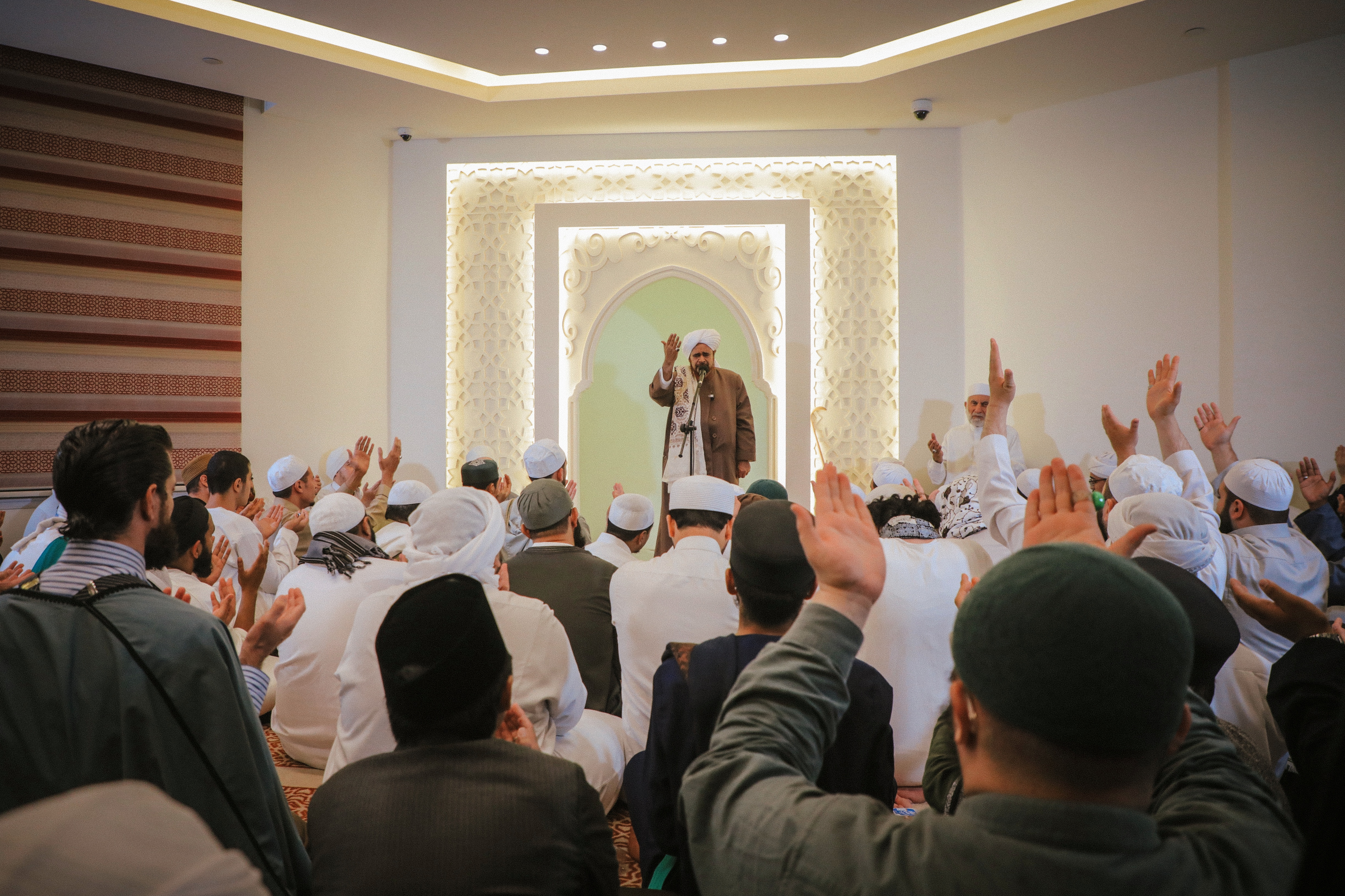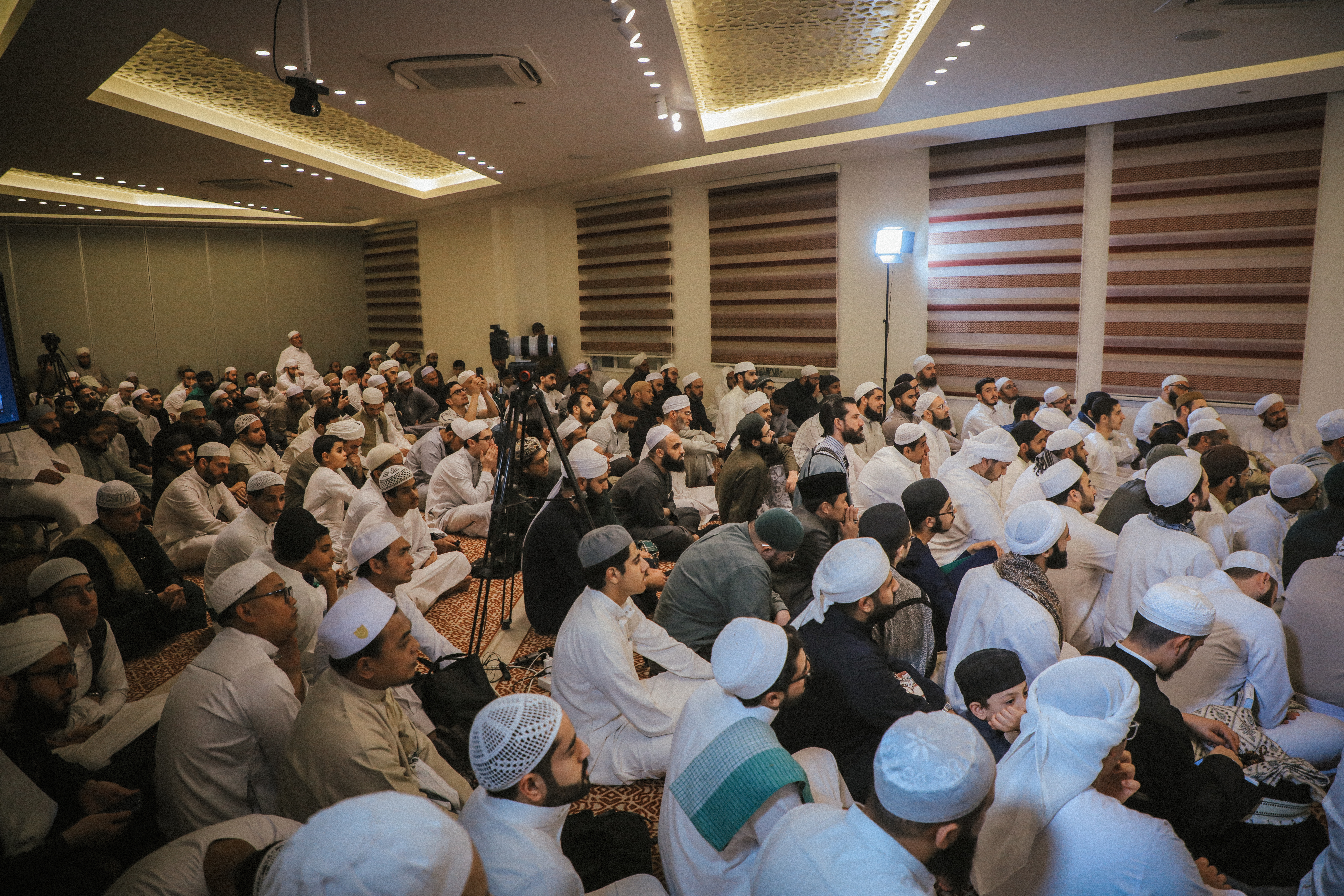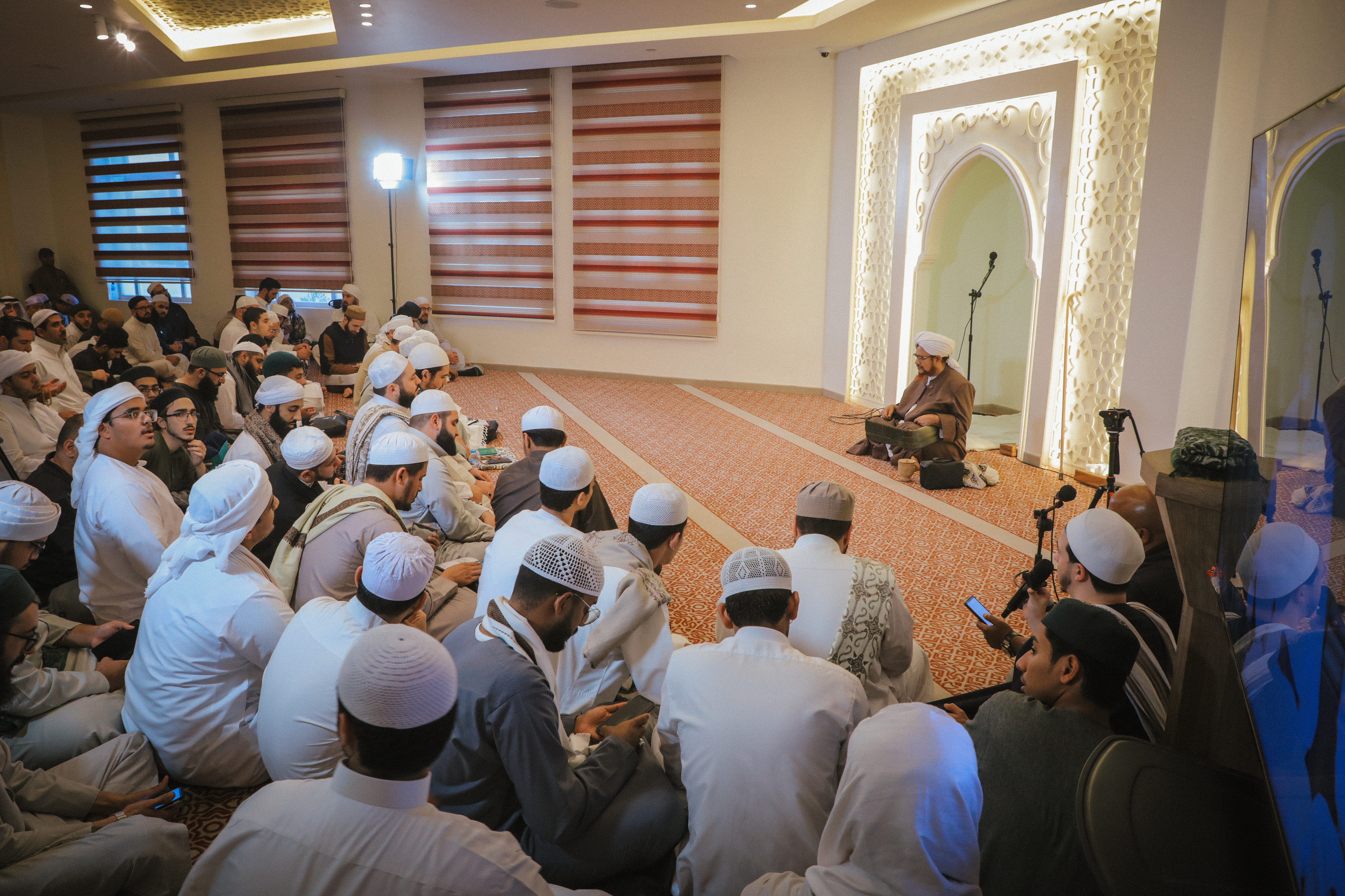 احمدوا الذي جمعكم في هذه المجامع، مجامع مذكورة في العالم الأعلى، وخيرُها للقلوب يملؤها لكل من استقبل، ولكل من أقبل، ولكل من توجه. وهي دعوته ﷺ، وهي هِمَّتُه، وهي نيَّته، وهي جهاده، وهي بكاؤه في الليالي -صلوات ربي وسلامه عليه-، أبقى الله لنا بكل ذلك هذه السلسلة المتصلة، وهذه الخيرات المتواصلة المتتالية. اللهم لك الحمد شكراً، ولك المن فضلاً.
