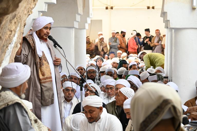 مذاكرة العلامة الحبيب عمر بن محمد بن حفيظ في مجلس الوعظ والتذكير في زيارة الإمام عبد الله بن علوي الحداد للنبي هود عليه السلام، شرق وادي حضرموت، ضحى السبت 9 شعبان 1446هـ بعنوان: