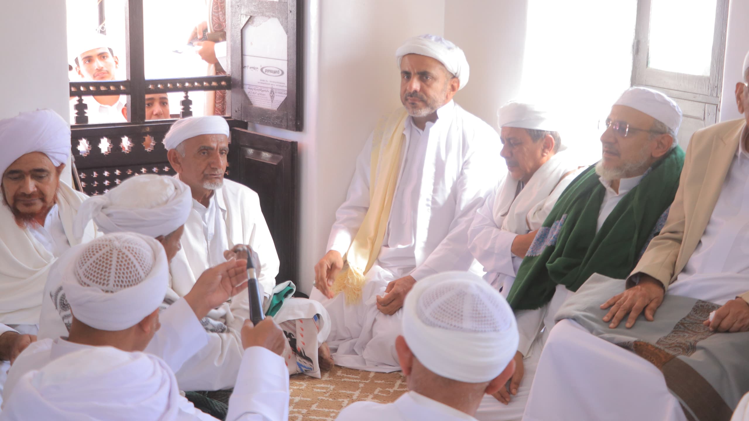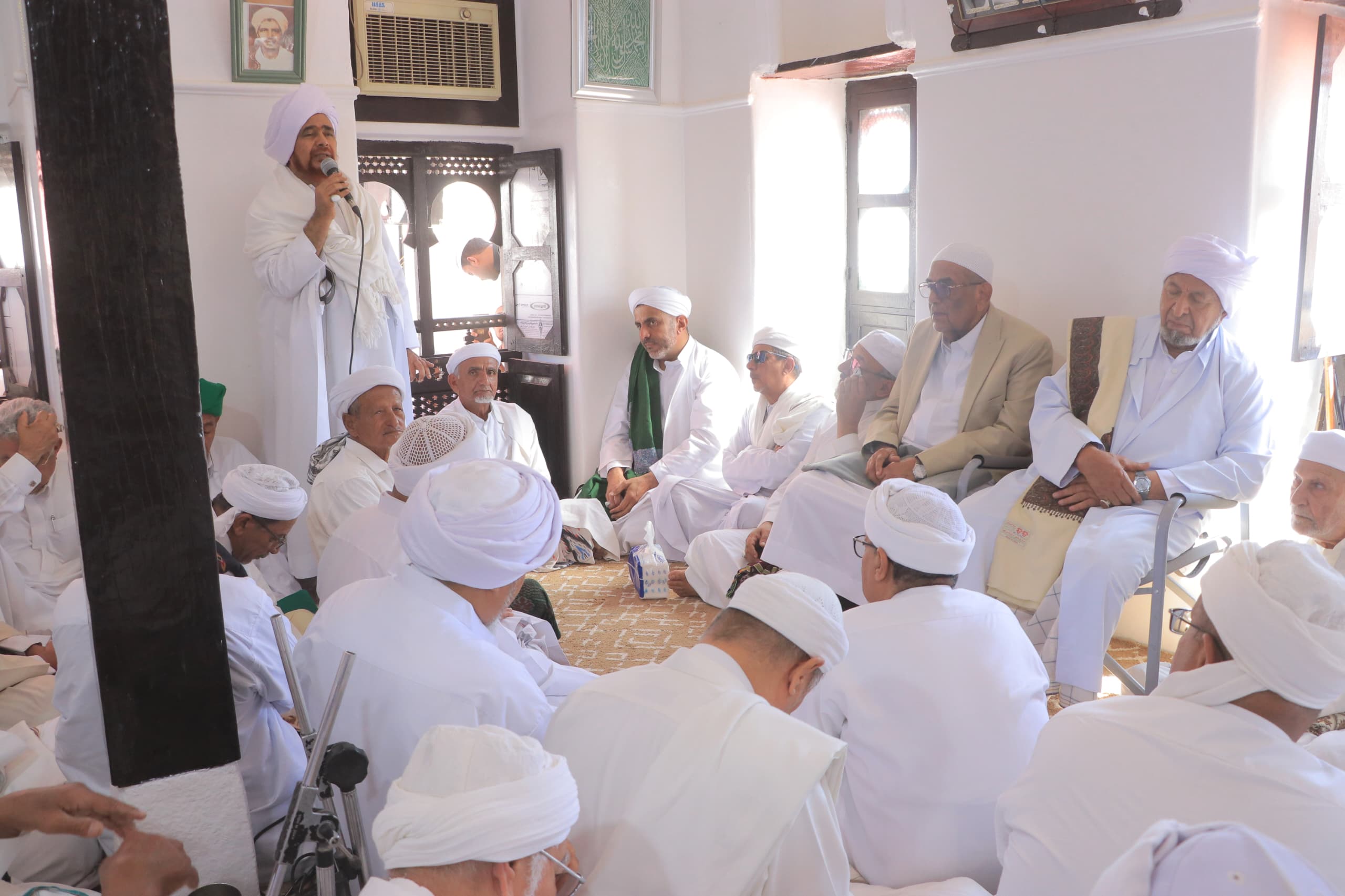 وفي هذا المكان قد كان قبل ثلاث وثلاثين سنة وثمانية أشهر تمّ تنصيبه عليه رحمة الله تبارك وتعالى في هذا المكان خلفًا لوالده الإمام النور المبين أحمد بن علي، أعلى الله درجاته وجمعنا بهم في أعلى جناته.