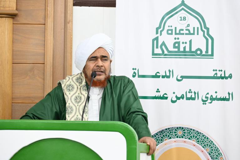 اللهم اقبلنا وأحبابنا من أهل العلم الذين وفدوا من مختلف البلاد، وهم نائبون في هذا الهمِّ عن أهل بلدانهم وعن غير أهل بلدانهم مِمّن جمعهم معهم هَمُّ قصدِ وجهك، وإرادة رضوانك والرغبة في الوفاء بعهدك، والظفر بمحبتك وودك، والجمع في دائرة حبيبك وعبدك محمد ﷺ.