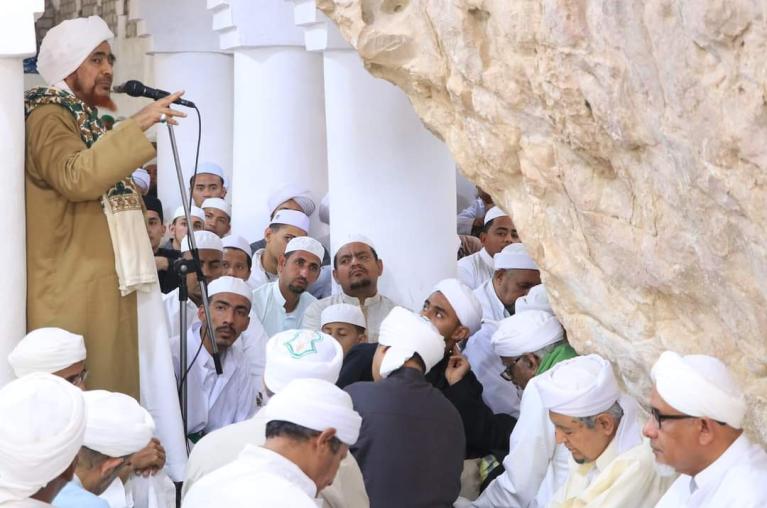 مذاكرة العلامة الحبيب عمر بن محمد بن حفيظ في مجلس الذكر والتذكير في زيارة الإمام حامد بن عمر باعلوي للنبي هود عليه السلام، في وادي حضرموت.
