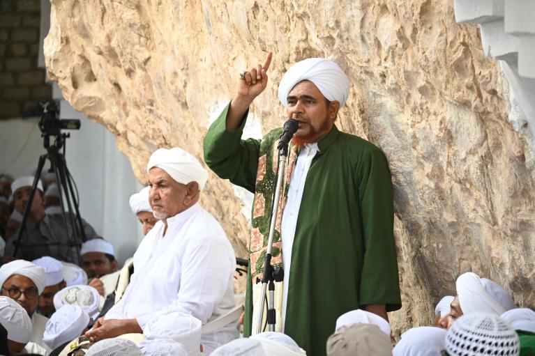 مذاكرة العلامة الحبيب عمر بن محمد بن حفيظ في مجلس الوعظ والتذكير في زيارة الإمام الشيخ أبي بكر بن سالم للنبي هود عليه السلام، شرق وادي حضرموت، ضحى الأحد 10 شعبان 1446هـ بعنوان: