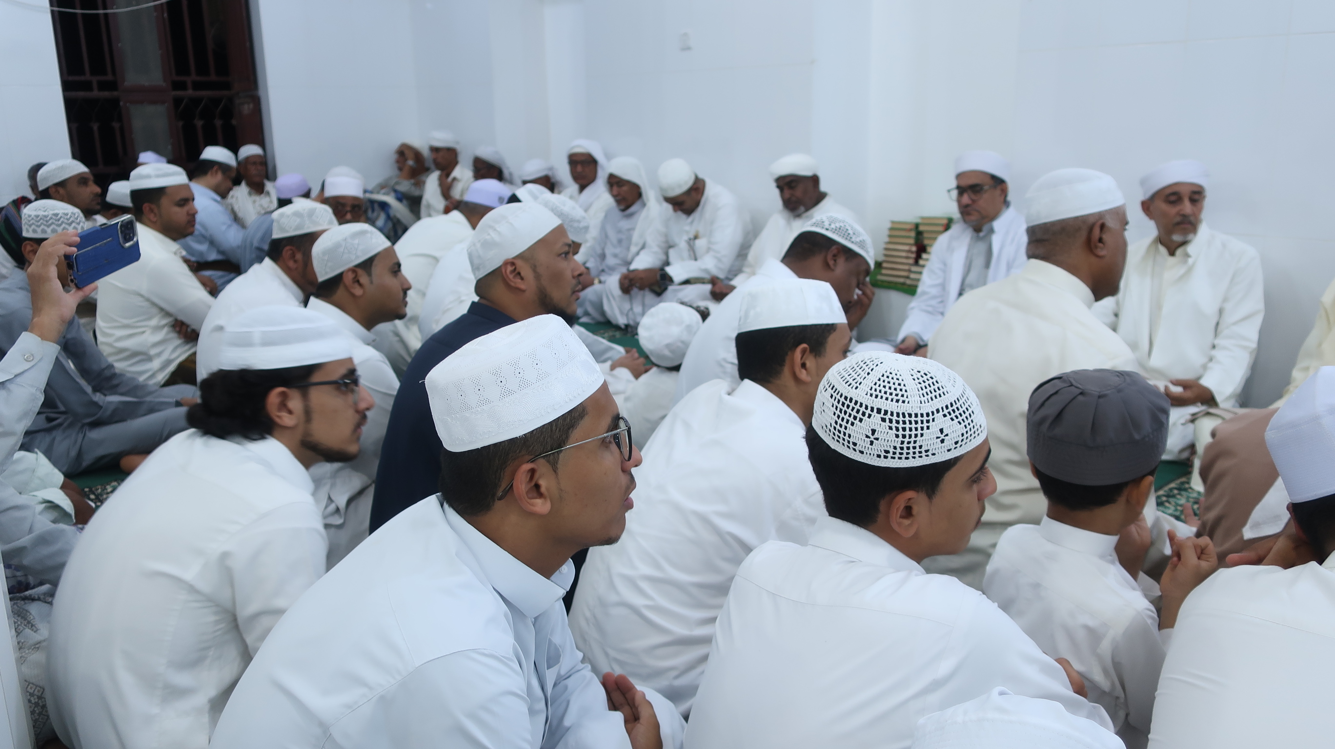 جزى الله أحبابنا الذين اعتنوا بهذا المكان واعتنوا بهذا المسجد، واعتنوا بهذا الأثر من الآثار في حضرموت، واعتنوا بقيامه واعتنوا بالمولد وجمعنا له، تقبَّل الله منا ومنهم وزادنا وإياهم من فيضه ونواله ما هو أهله، ولا صرف أحد منا إلا وهو ممتلئ القلب بنور الإقبال على الحق، ومَحظي بالقبول عند الرحمن جلَّ جلاله.