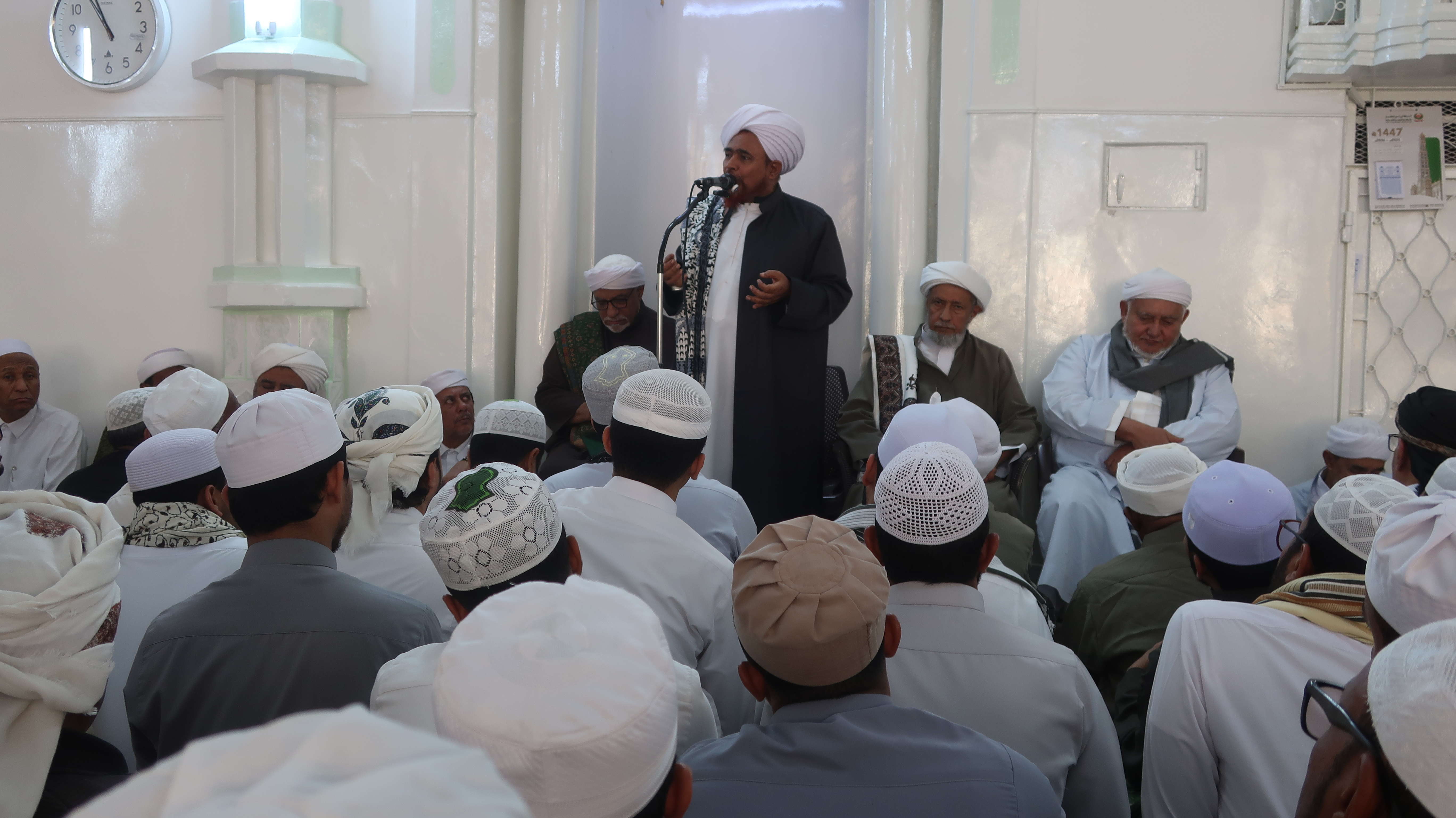 مذاكرة الحبيب عمر بن حامد الجيلاني والحبيب عمر بن محمد بن حفيظ في حولية الإمام الحبيب عمر بن أحمد الجيلاني في جامع منطقة الخريبة، في وادي دوعن، محافظة حضرموت، 5 جمادى الثانية 1447هـ بعنوان: