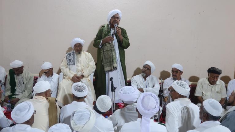 فالحمد لله على هذا الاجتماع، والحمد لله كما سمعتم، نحن من قبائل شتى وبلاد شتى، ومعنا من خارج حضرموت، من خارج اليمن، من هنا ومن هناك، والكل في رابطة موجودة بهذا الحبيب ﷺ وبما بعث به، وهي تجمعنا مع المخلصين في شرق الأرض وغربها، عرب وعجم، إنس وجن، تجمعنا هذه الرابطة بهم، وإذا شاء الحق أظهر سر هذه الرابطة وأبدى لها ما يقتضيه جوده مِن جمع القلوب وجمع الشمل للمسلمين ورد كيد أعدائهم.